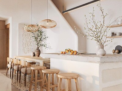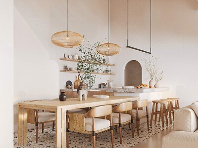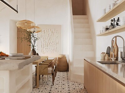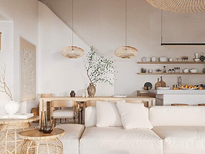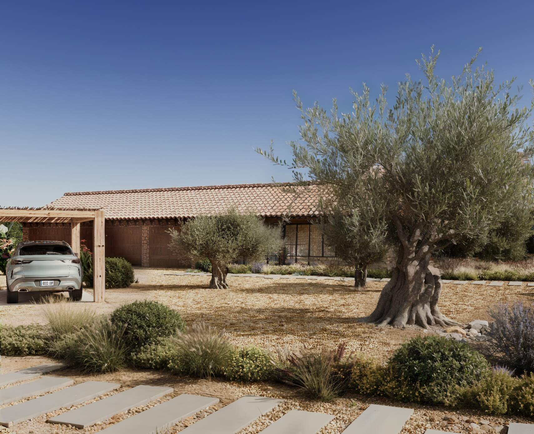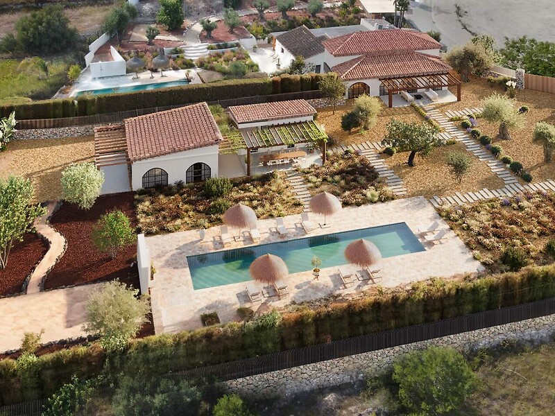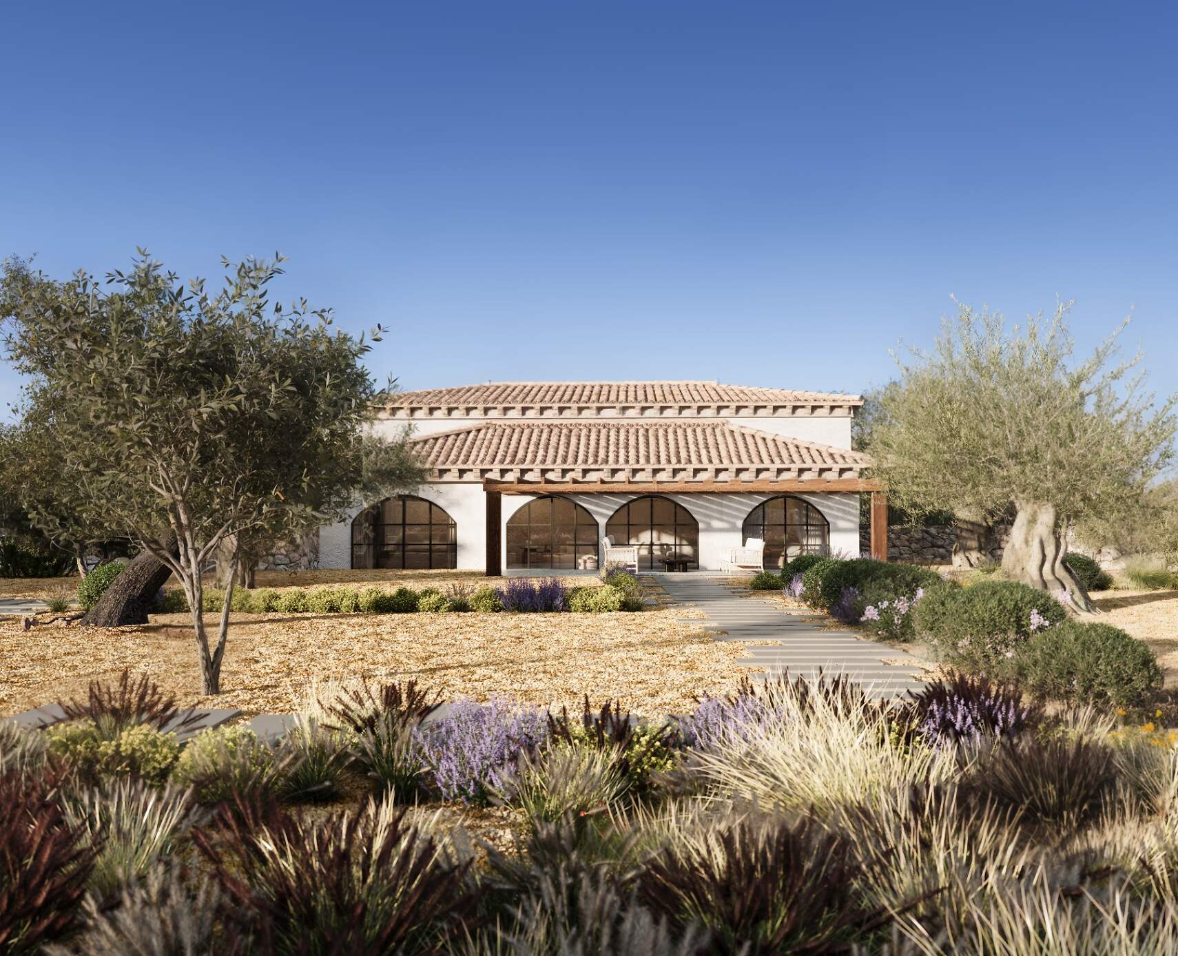 Geïnspireerd door de ruwe schoonheid van de regio, wordt dit project uitgevoerd in een verfijnde, rustieke mediterrane stijl. Het gebruik van natuursteen van de Montgó, massieve houten poorten en witte zandpaden zorgt voor een organische verbinding met het landschap. Eeuwenoude olijfbomen en schaduwrijke pergola’s creëren de sfeer van een privé-paradijs.