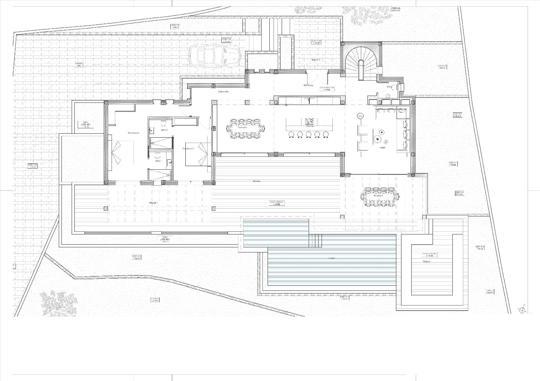 De villa is omringd door prachtig aangelegde tuinen en ruime terrassen die uitnodigen tot ontspanning. Het privézwembad vormt het centrale punt van de buitenruimte, waar u in alle rust kunt genieten van het mediterrane klimaat en de panoramische uitzichten.Wonen in Benissa: Luxe en Natuur in Perfecte Harmonie