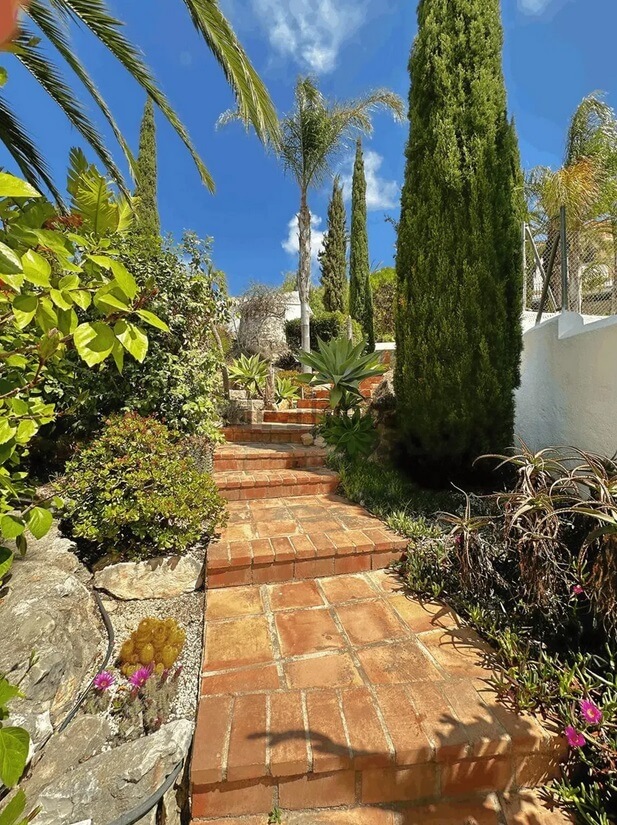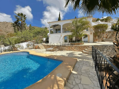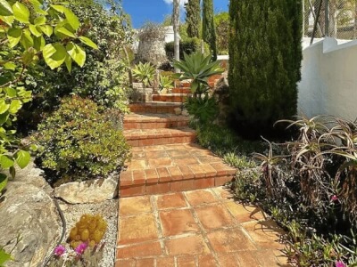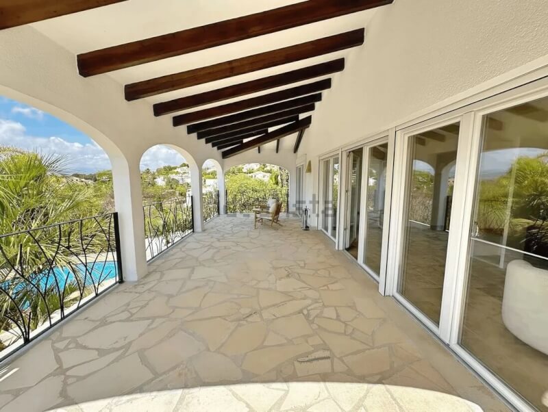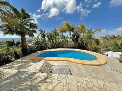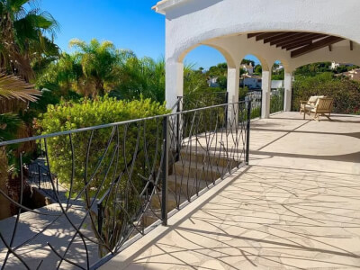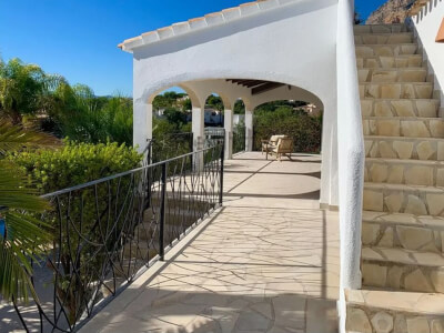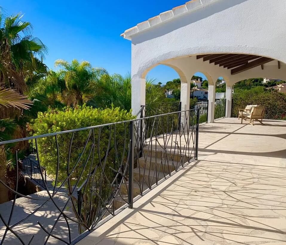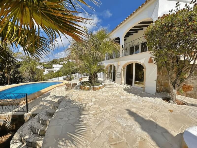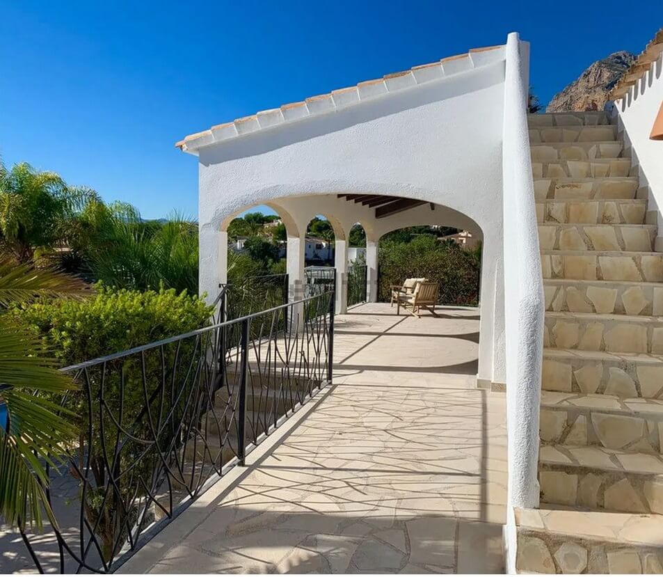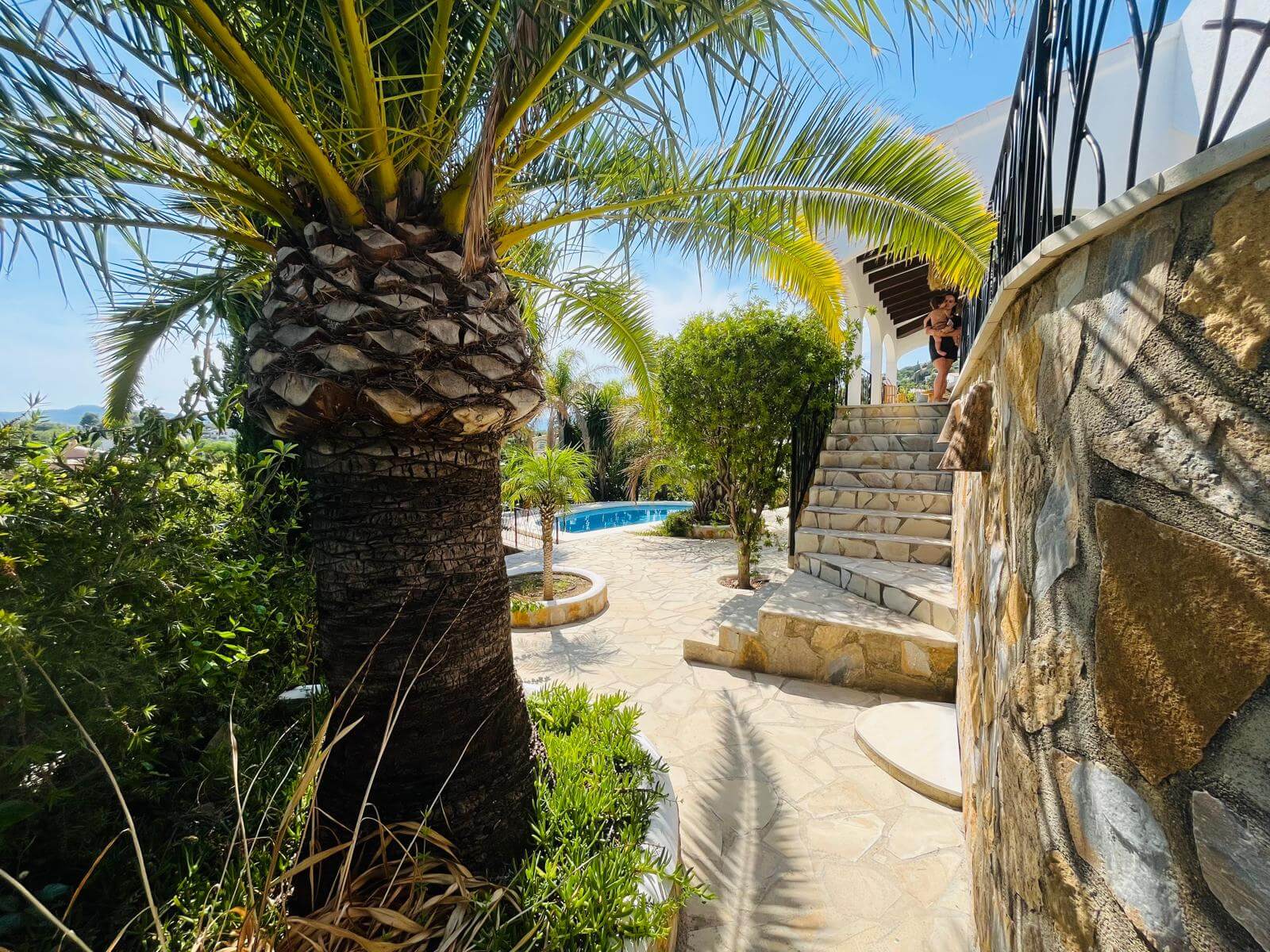 Beleef de ultieme rust en schoonheid in deze gerestaureerde villa, gelegen in de gewilde Castellans wijk van Jávea. Vanaf het moment dat u arriveert, omarmt de serene sfeer u. De omheinde ingang biedt toegang tot parkeergelegenheid voor drie auto's, deels overdekt voor schaduw. De mediterrane tuin, een paradijs van levendige planten en zachte waterfonteinen, leidt u naar het hart van het pand: een niervormig zwembad omringd door zonnige terrassen, perfect voor ontspanning in volledige privacy.