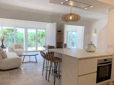 Stap binnen in een oase van rust en elegantie, waar de tijdloze charme van Ibiza harmonieus samengaat met de schittering van de Middellandse Zee. Deze prachtig gerestaureerde villa in de gewilde wijk Castellans van Jávea biedt meer dan alleen een woning; het is een privéheiligdom waar elk detail een verhaal vertelt en een luxe levensstijl mogelijk maakt.