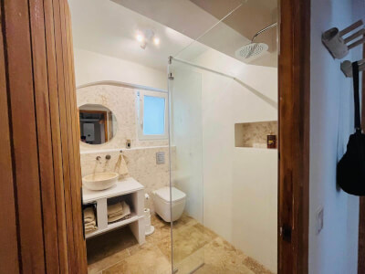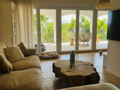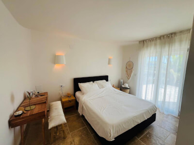 De overdekte naya is een hoogtepunt; een ideale plek om te genieten van een ontbijt bij zonsopgang of een diner met uitzicht op het zwembad en groen. In de tuin ontdekt u een verborgen juweel: een zelfstandige gastenstudio, omgevormd uit een oude werkmanswinkel, compleet met moderne keuken, open haard en verhoogd slaapgedeelte.