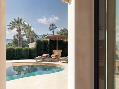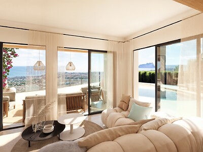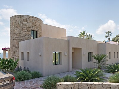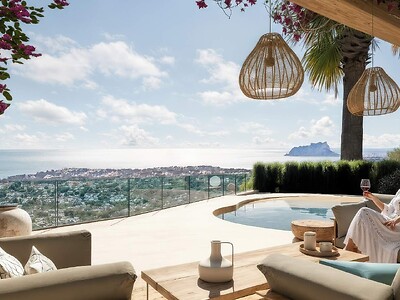 Beleef de ultieme mediterrane luxe in deze karaktervolle villa, waar modern design en een adembenemend 180-graden uitzicht over de Middellandse Zee en de omliggende bergen samenkomen. Gelegen op een van de meest begeerde locaties van de Costa Blanca, biedt deze woning de perfecte balans tussen serene rust en de nabijheid van de bruisende kustplaatsen Moraira en Calpe.