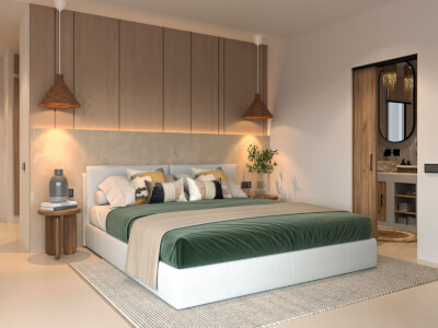 De villa beschikt over een lichte woon-eetkamer die uitkomt op een volledig uitgeruste keuken, verbonden met zonnige terrassen en een 42 m² groot zwembad. De vier royale slaapkamers, elk met eigen ensuite badkamer, bieden ultiem comfort. Vloerverwarming en luchtverwarming via kanalen garanderen een aangenaam klimaat het hele jaar door.