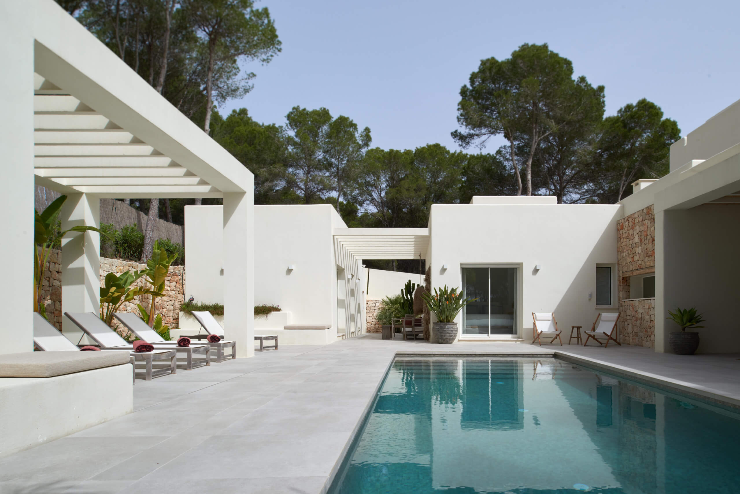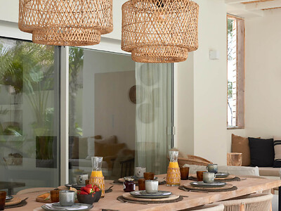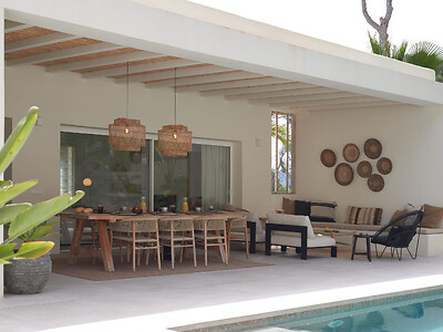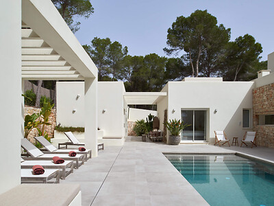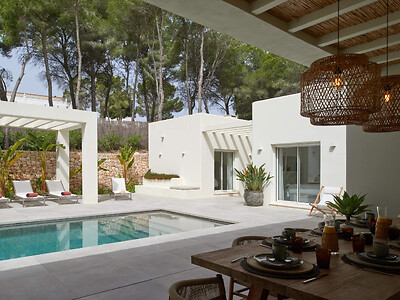 Binnen komen mediterrane charme en modern comfort samen: een open woonruimte, warme accenten en een volledig uitgeruste keuken creëren een uitnodigende sfeer. Grote ramen zorgen voor veel natuurlijk licht en creëren een naadloze verbinding met de buitenruimte, waar een verwarmd privézwembad, zonneterrassen en meerdere loungegebieden wachten – ideaal om ten volle van de mediterrane levensstijl te genieten.