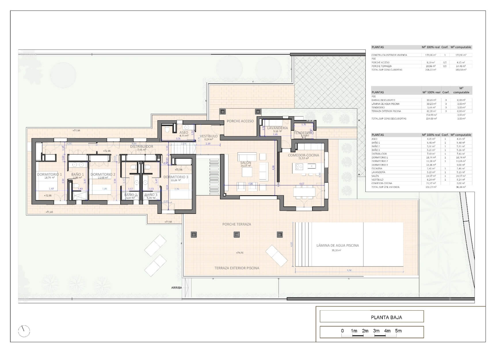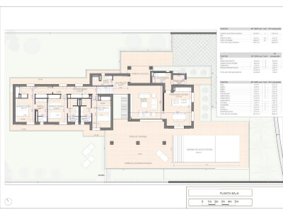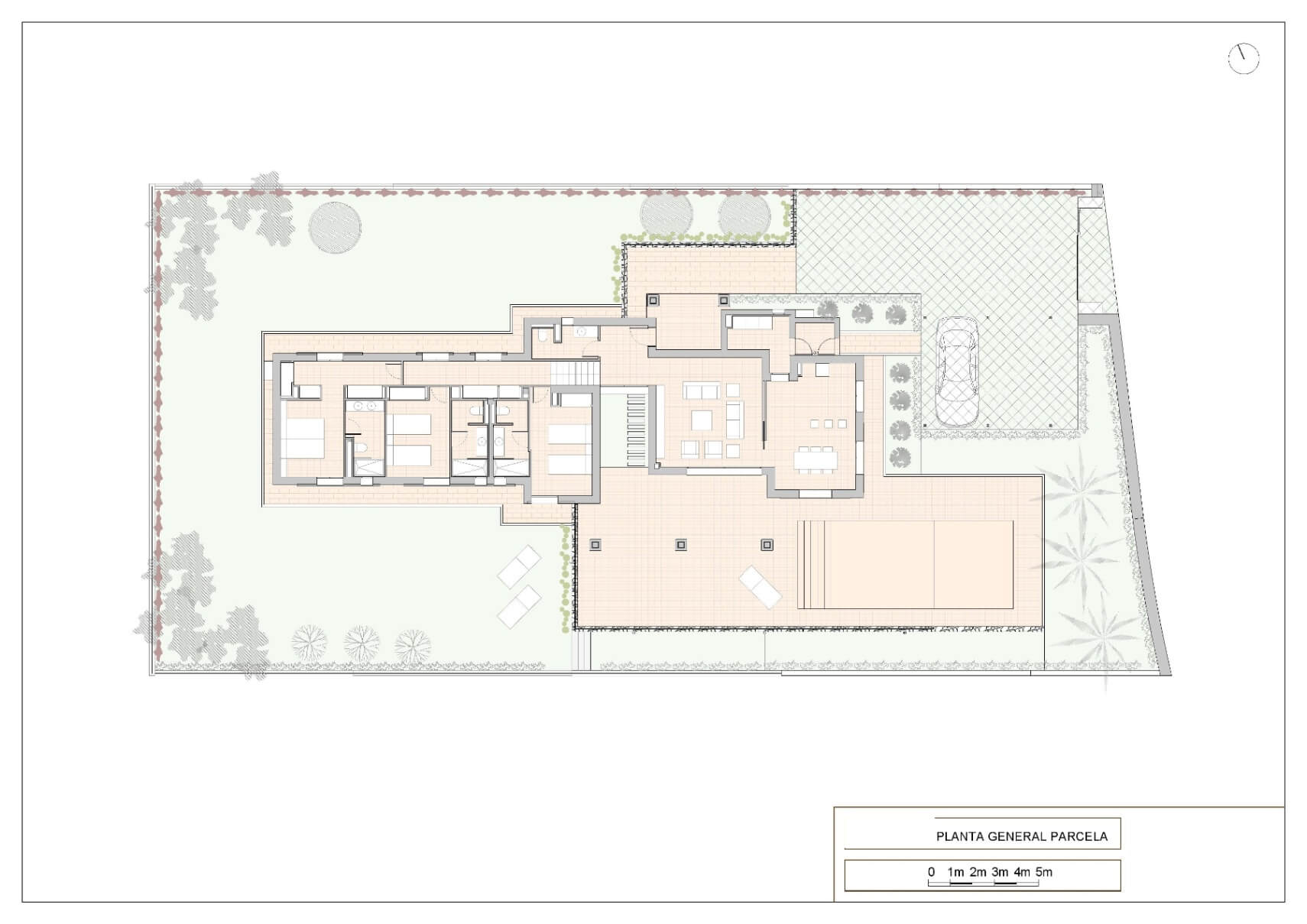 De buitenruimtes zijn ontworpen om te ontspannen en te genieten. Een mediterrane tuin, een zwembad met turquoise water en ruime zonneterrassen maken dit huis perfect voor lange dagen in het milde klimaat van Jávea. Onder de pergola is er parkeergelegenheid voor twee auto’s.