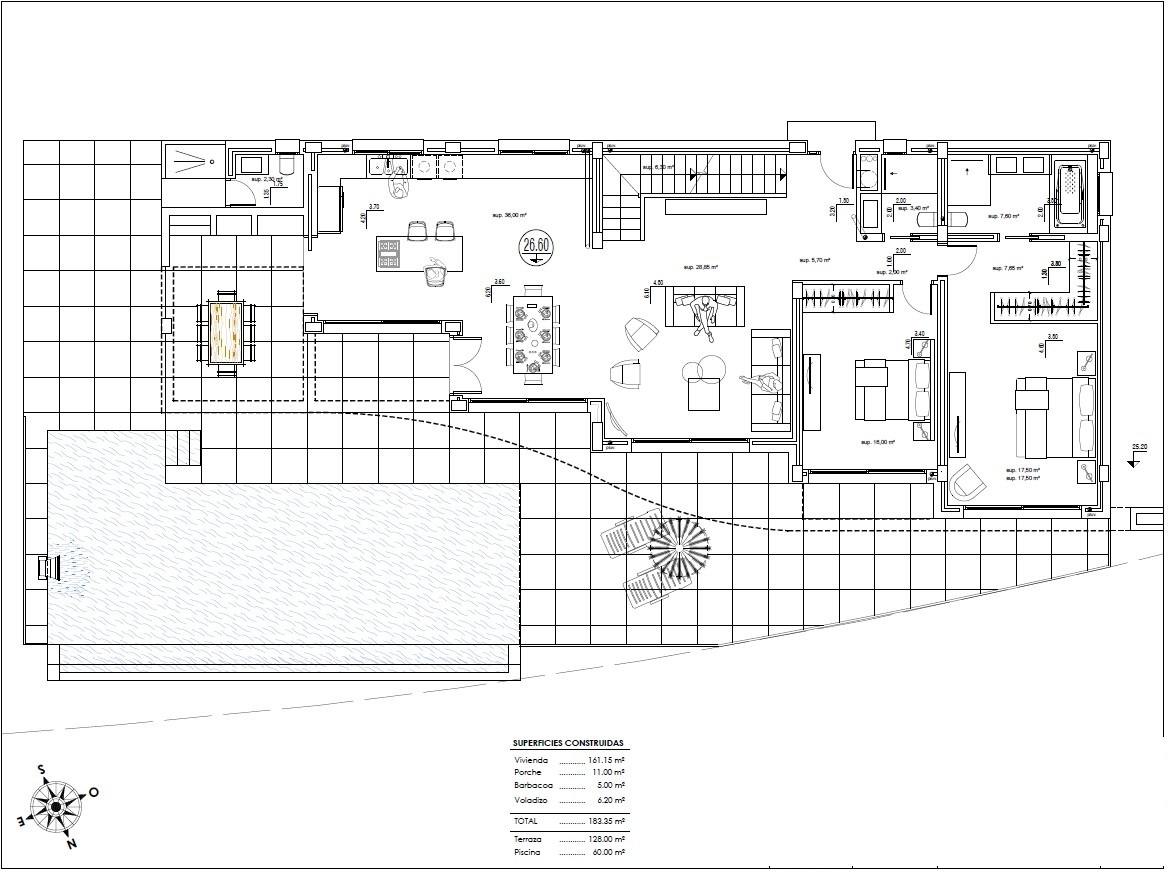 Bovenverdieping: Hier bevinden zich nog twee slaapkamers, waaronder de master suite. Beide kamers hebben toegang tot riante terrassen waar u ontwaakt met de zon die opkomt boven de kustlijn.